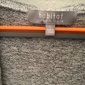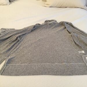 The sweater is super soft and comfy bought at a boutique on the Oregon coast. It’s very roomy with pockets and three-quarter sleeves open front.