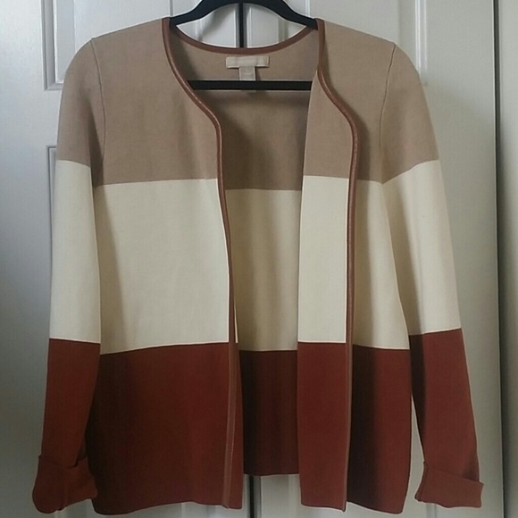 Open sweater jacket with leather piping detail. Only worn once, like new.