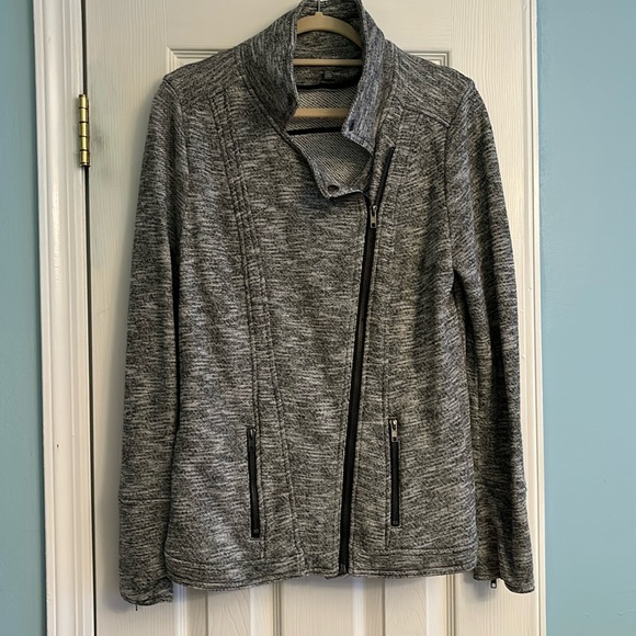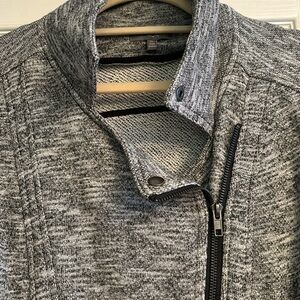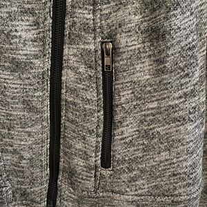 Gray heathered material with zippers - front, pockets and on arms