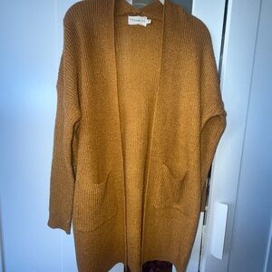 -mustard knit cardigan. size small.