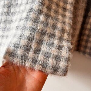 Sweater Jacket – Size Small | Grey & White Checkered | Boho Cozy Vibes