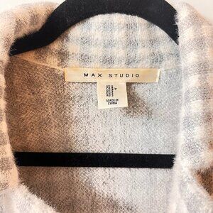 This Max Studio faux fur-trimmed sweater jacket is cropped to hip length for easy everyday wear. With a soft grey and white checkered pattern, it brings that boho-meets-modern vibe in a neutral palette you can style a million ways.