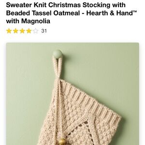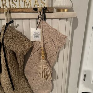 Sweater Knit Christmas Stocking with Beaded Tassel Oatmeal - Magnolia