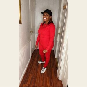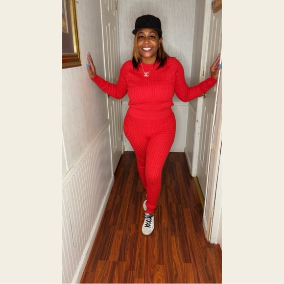 Sweater knit set - has stretch - true to size - model has on size medium *brand new*