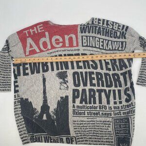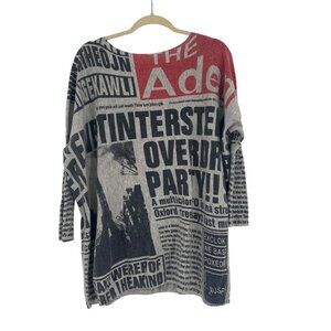 Sweater Knitted Fabric Newspaper Design Dolman Sleeve Wool Blend NO SIZE TAG but fits like a large.
