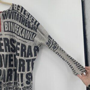 Sweater Knitted Fabric Newspaper Design Dolman Sleeve Wool Blend NO SIZE