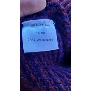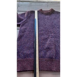 Sweater LL Bean 100% Shetland Wool Men's L Blue Dark Red Crewneck Pullover