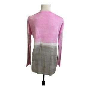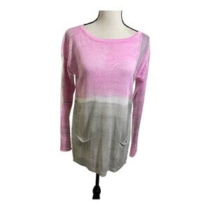 Sweater womens Italian made 100 linen color blocked with front pockets side slit. Size Small oversized could fit a medium. Pink grey white tie dye style.