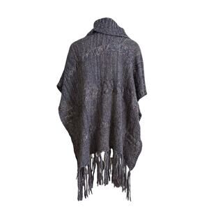 Sweater Poncho Turtleneck Cable Knit Chunky Boho Fringe Lagenlook Purple OS