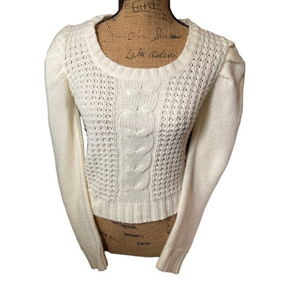 Beautiful Cable knit sweater has some puff on shoulders that make it look absolutely stunning this was an absolute favorite sweater of mine.