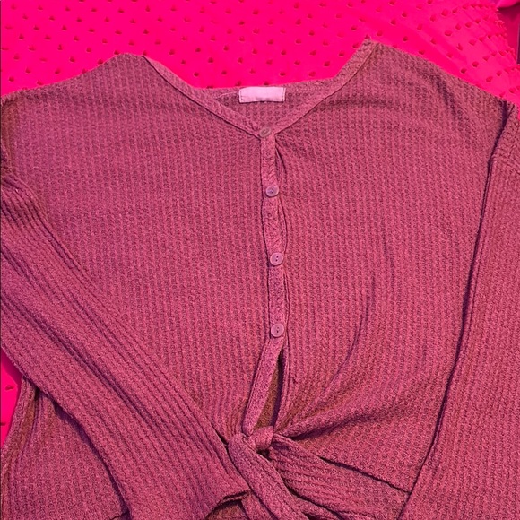 Discover the elegance of the Sweater Project's ribbed button-down sweater, featuring a chic tie front and a comfortable fit. The vibrant red color adds a bold touch to your ensemble, making it a versatile addition to your wardrobe.