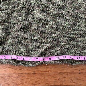 This Sweater Project long sleeve sweater has knit material with no flaws. It's a green color with tan brown highlights, is a size medium and is in good condition.