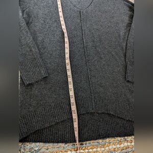Sweater S Gray Oversized Wool Nylon Blend Middle Seam Vneck Pullover Vneck