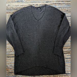 Express Women's Sweater S Gray Oversized Wool Nylon Blend Middle Seam Vneck Pullover Tight Knit