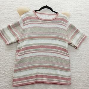 Sweater Size L VTG Pink Beige Stripe Soft Knit Light Academia Soft Girl Y2K Prep