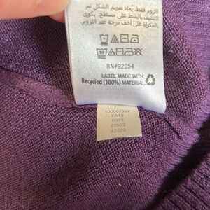 Keywords: sweater set, tank top, scarf, purple, rhinestone, knit, long sleeve sweater, sleeveless top, fringe scarf, coordinated set, sweater outfit