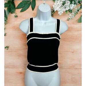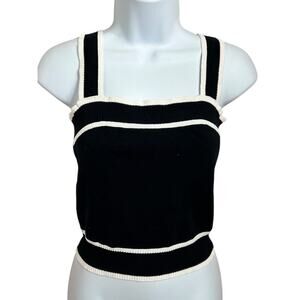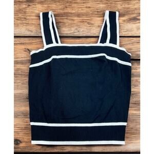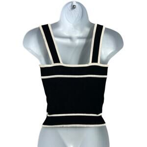 Sweater Tank Top Sz Small Black White Sleeveless Blouse Ribbed Sweater