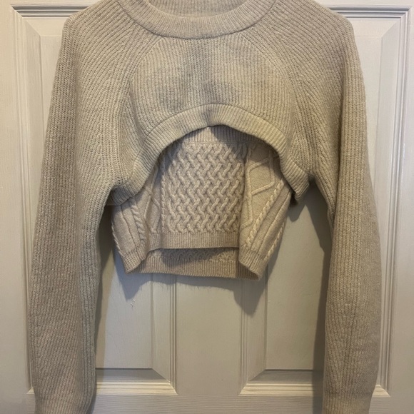 Fun sweater / top. You can wear the tank top alone or with the top cardigan. Both the same size and VERY warm. Great material and only worn once.