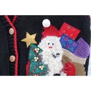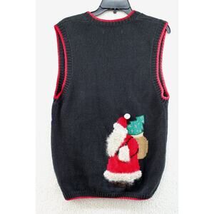 Sweater Vest Embroider Christmas Santa Clause Wood Buttons Ugly Cute Beaded S M