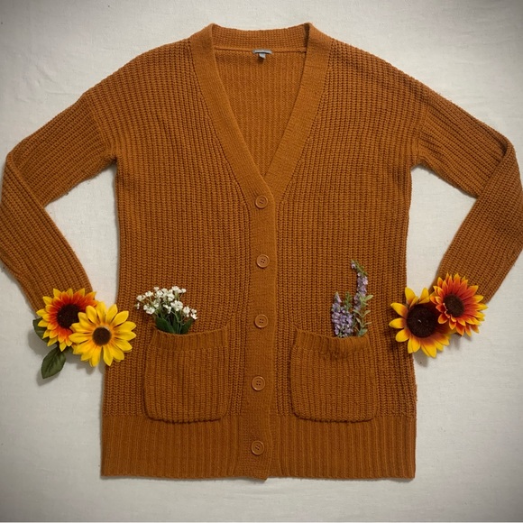 Pumpkin Spice Girlies.. it's never too soon! This fall colored sweater will look great on you all year. Light weight and thin, this sweater is an easy throw on layer for Spring and Summer nights. (FLOWERS NOT INCLUDED)