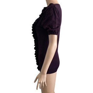 Sweater Women's Medium Purple Ruffled Buttoned Front Stretch