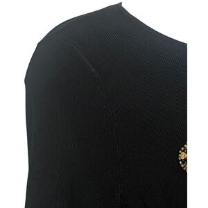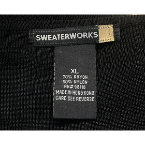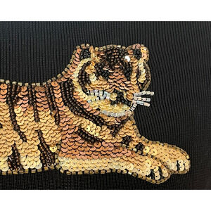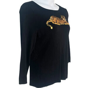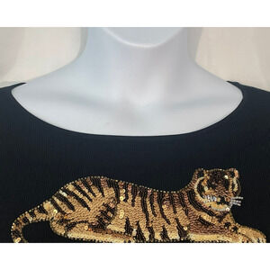 Sweater Works Sz XL Pullover Sweater Top Sequin Tiger Applique Black Slinky Knit