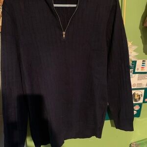 Sweater amens Purple Top Size Large Navy Blue Long Sleeve with 3/4 Zipper