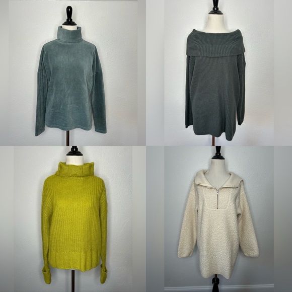 Stay cozy and stylish with this bundle of four women's sweaters, all in size small: