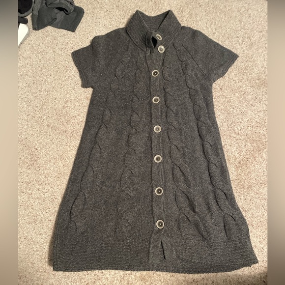 Perfect cable knit sweater dress! Short sleeved, nice button! Looks great with tall boots!