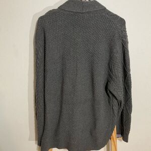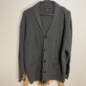 Men’s casual, long sleeve shawl, collar buttons down cable knit cardigan sweater with pockets. This is new with no tags never worn.