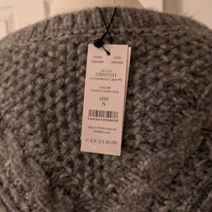 this item was purchased by White House Black market. embellished crew neck sweater. beaded embellishment down the front and sleeves and long sleeves. regular length 24.5% from shoulder machine wash cold brand new tags on color is Heather harble gray