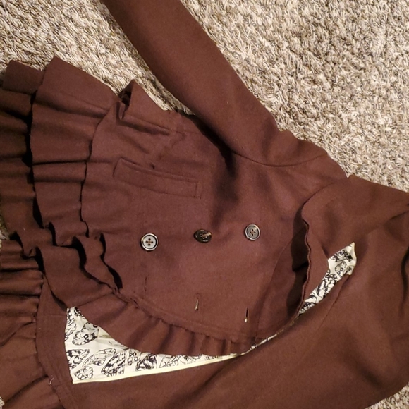 Sweater jacket from Anthropologie brand elevenses size 2. Pockets and ruffles. Good condition no stains or tears.