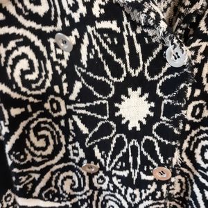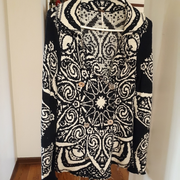 Free People navy and cream button down jacket. Sweater material is buttery soft. New never worn. Size is but fits a small easily.