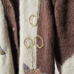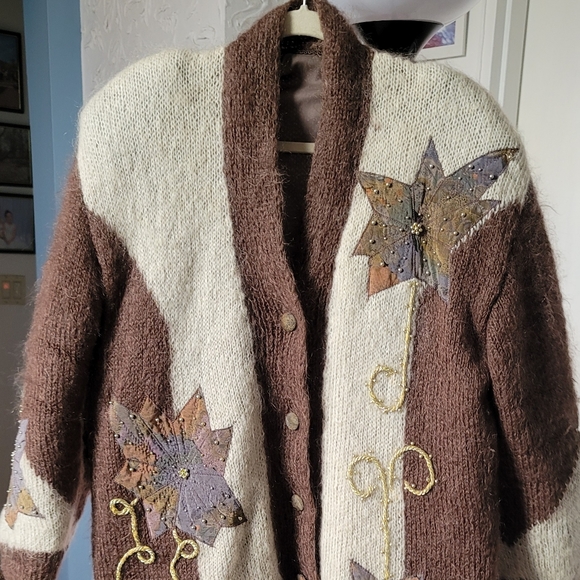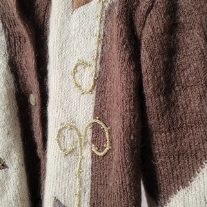 Wool sweater size L, beautiful embroidery with shoulder pads