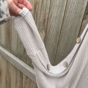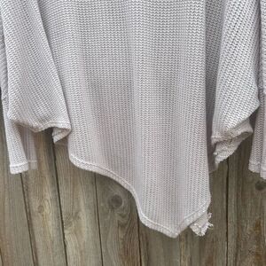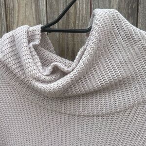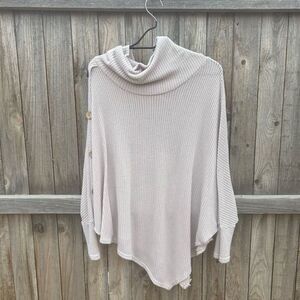 Sweater long sleeve cowl neck size large. Buttons down on sleeve. Asymmetrical design. Some loose thread, see pictures.