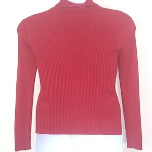 Sweater red knit Long sleeve stretch Ribbed cotton blend turtleneck L P