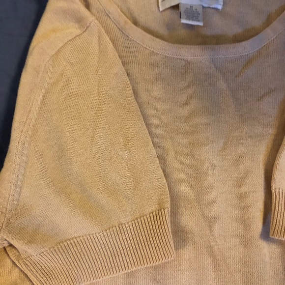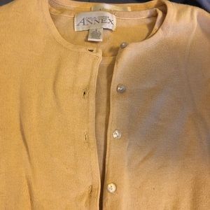 Beautiful classic sweater set, soft tan, mother of pearl buttons. Perfect condition.