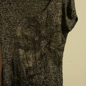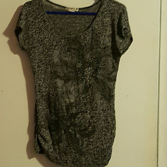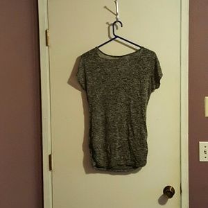 Very sheer knit top. Black tank goes great under this for that layer look! Really great condition.