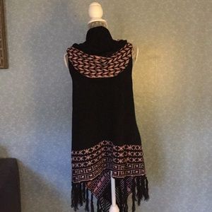 Cute sweater vest with fringe trim and a crocheted feature on the hood. NWOT. These and some other things in my closet are from my daughter’s boutique which closed. Most of the pieces will have tags. Some have lost their tags or were never ticketed.