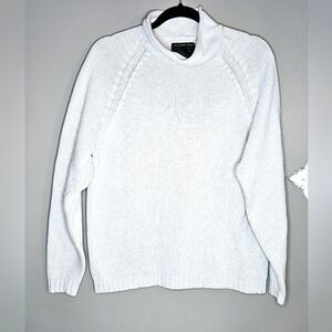 have you ever touched a knit and thought "ohh that's nice"? well that's this sweater. pristine condition, not marks holes or pilling. cute little rolled collor line. perfect piece for your closet of natural knits. tag is only 1/2 attached..