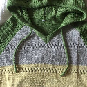 Comfy Hoodie Sweater Green Gray Knitted Modern