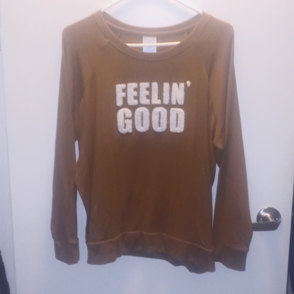 brown long sleeve sweater with textured Feeling Good