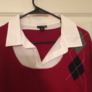 Red sweater with faux button up shirt. Black argyle patterns. Only worn twice. Petite XL