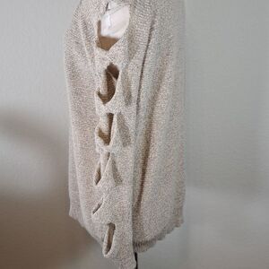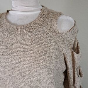 Sweater AZZ Trading Inc Women’s Tan Heather Cold Shoulder Cutout Sleeves Size L