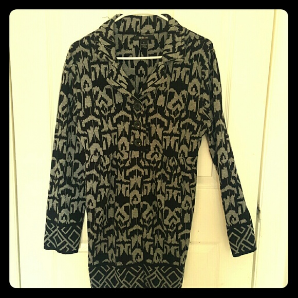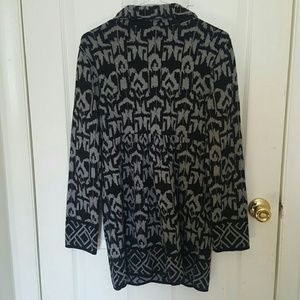 Black/Gray Cotton button-up knee-length sweater perfect for those chilly date nights! It looks KILLER with black skinny jeans and black boots.