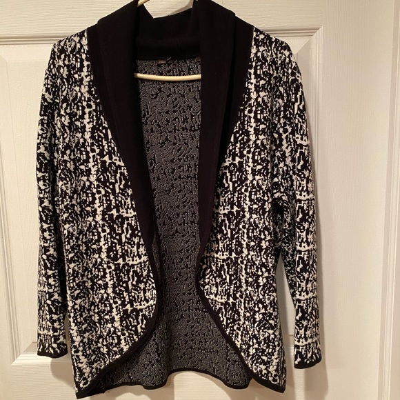 Black and white sweater/jacket...no tags..measures 19 1/2 inches seam to seam along chest.