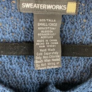 SweaterWorks Women's Navy cardigan sweater 3/4 Sleeve Open Weave Sz S