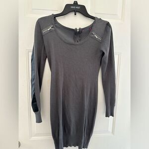 Sweater dress with faux leather sleeves