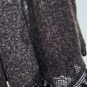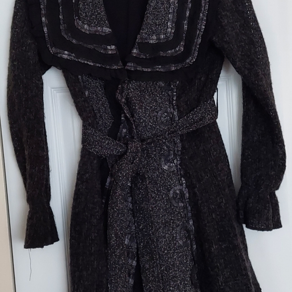 Dolce Cabo grey and black knit sweater- jacket- has pockets, fine detailing and snap closures