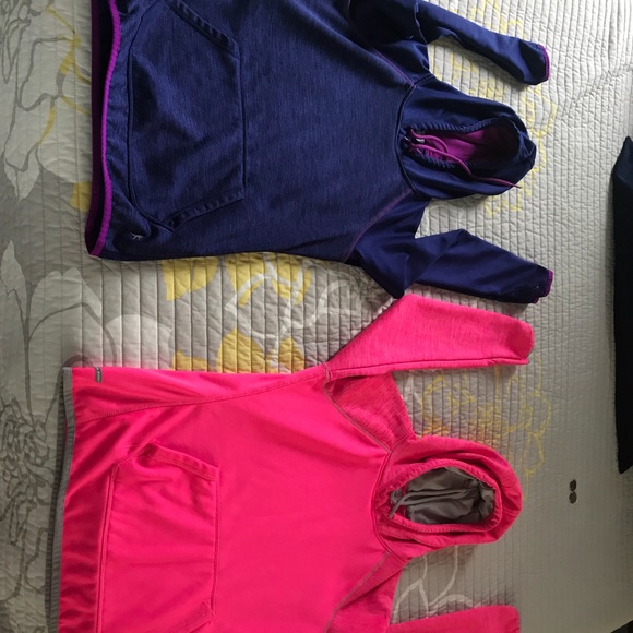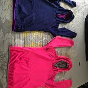 Neon pink and a purple/pink pull over hoodies worn a hand full of times. In excellent conditions. Bought from Walmart a year ago. They don’t fit me anymore